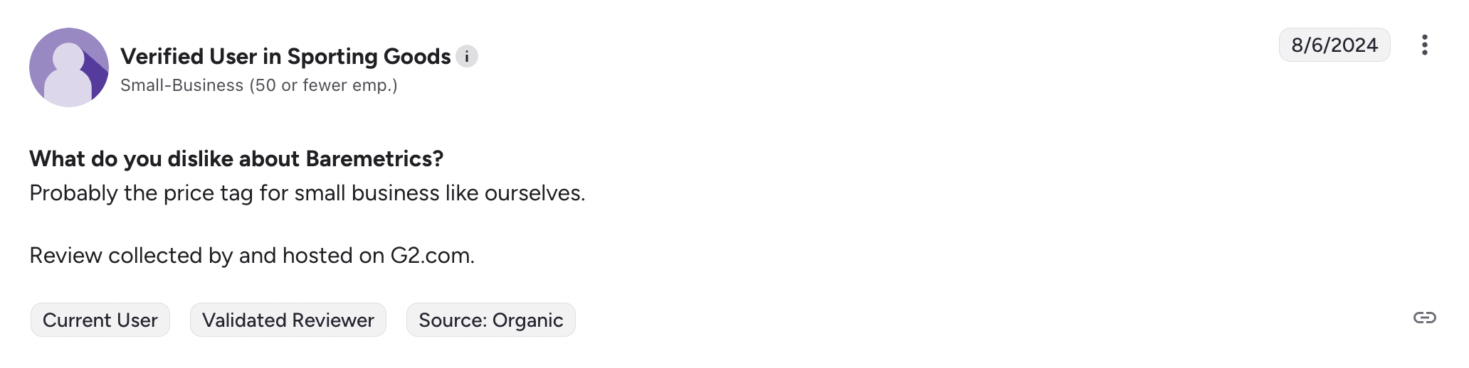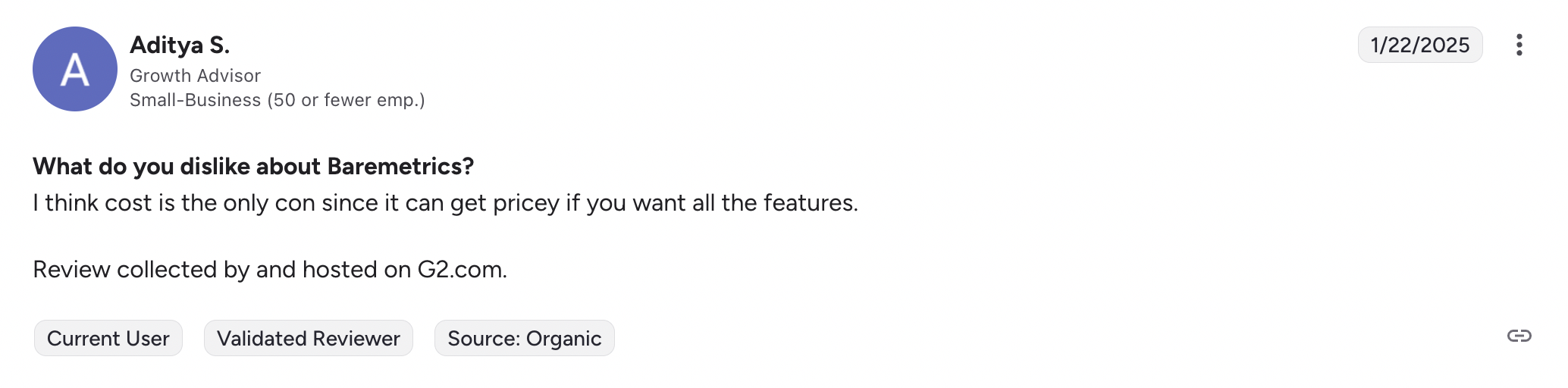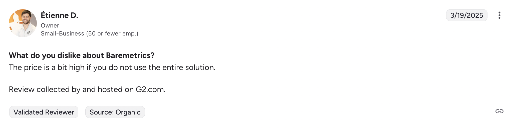 - Add-ons at $129 each — core features like Payment Recovery or Cancellation Insights sold separately.