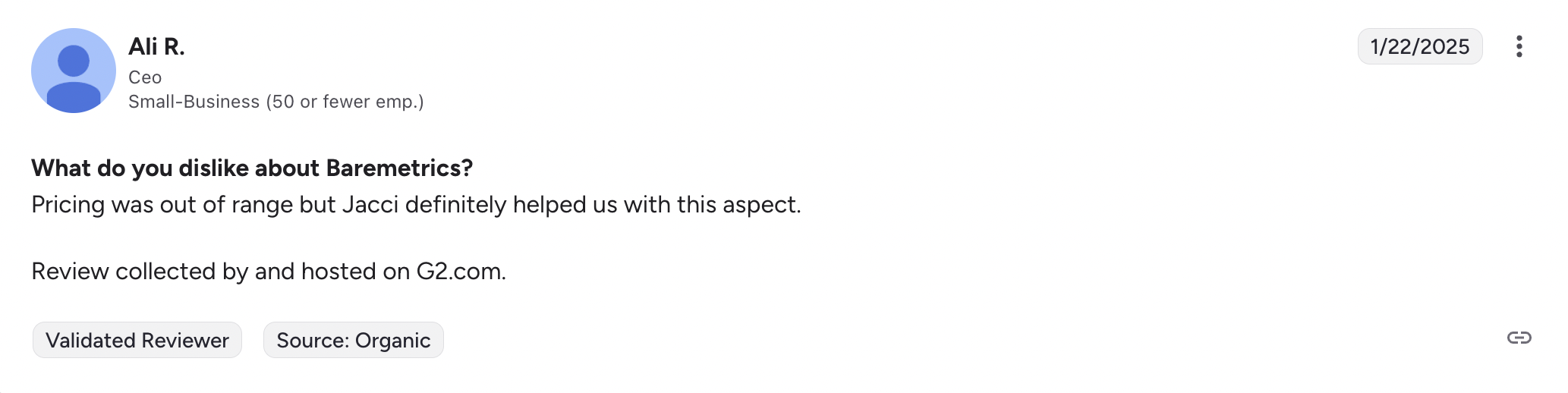 Bottom line: Turboboost gives you the core metrics Baremetrics charges for — no caps, no limits, and no monthly bill to track your own revenue.